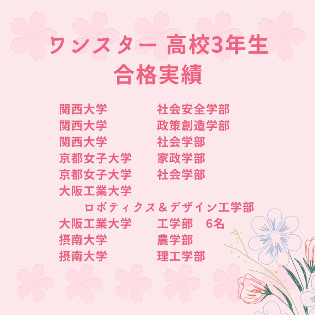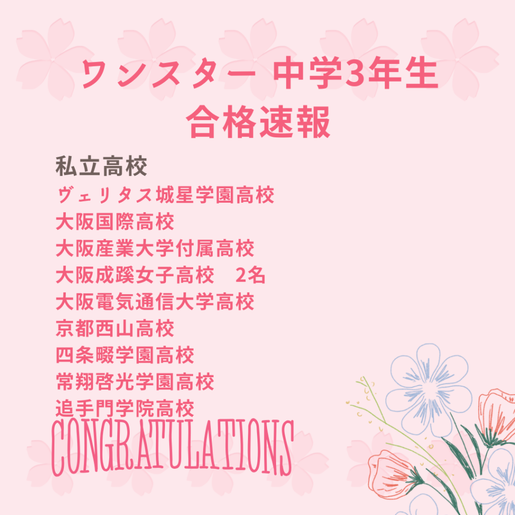 また、これまでに第一志望校に通らなかった生徒達のほぼ全員は、「ダメ元でもチャレンジしてみたい!」と自分自身で強く望んだ生徒達です。ワンスターは、若いうちに全力で立ち向かった結果、打ち砕かれる経験は将来の財産になると考えているので、強く望む生徒には合格率にかかわらず、志望校受験を止めないようにしております。
